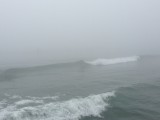 おはようございます。 今日も朝から霧がすごいですね。 ようやくうっすら見えてつるかめポイントでヒザ~モモ、海の子ポイントでモモ~コシとなってます。 霧で周りの状況が見づらいので十分注意して波乗りしましょう。 スクール随時募集中です。