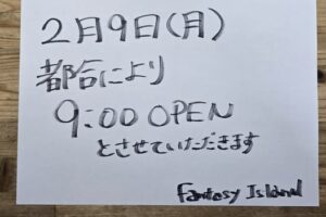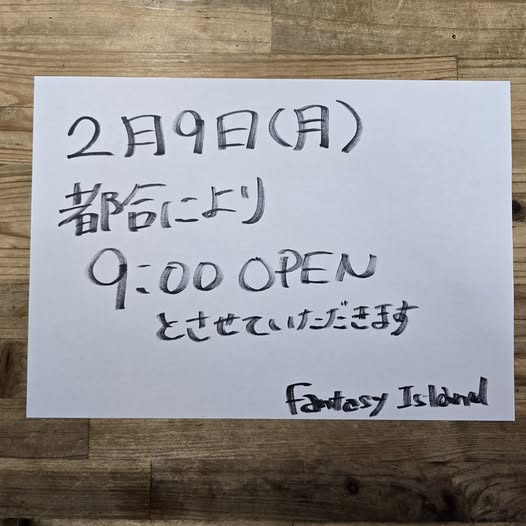 2/9(月) 営業時間のお知らせ