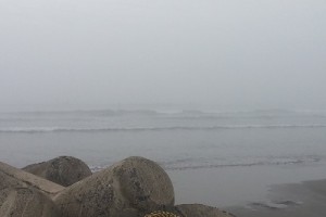 おはようございます。 今日は昨日よりも霧が濃く波が見えません。 予想はヒザ~モモくらいでしょう。