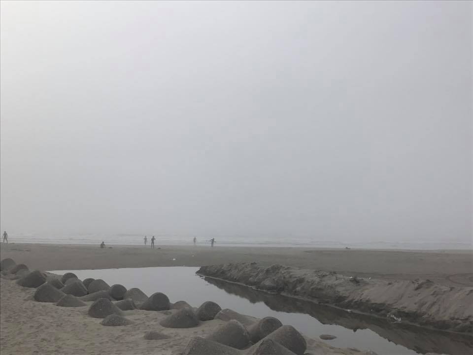朝から海辺では霧が出ていて波が見づらい状況。
